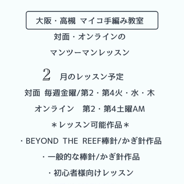 2月もレッスン回数が少なくなっております。ご迷惑をおかけしますが、よろしくお願いいたします。